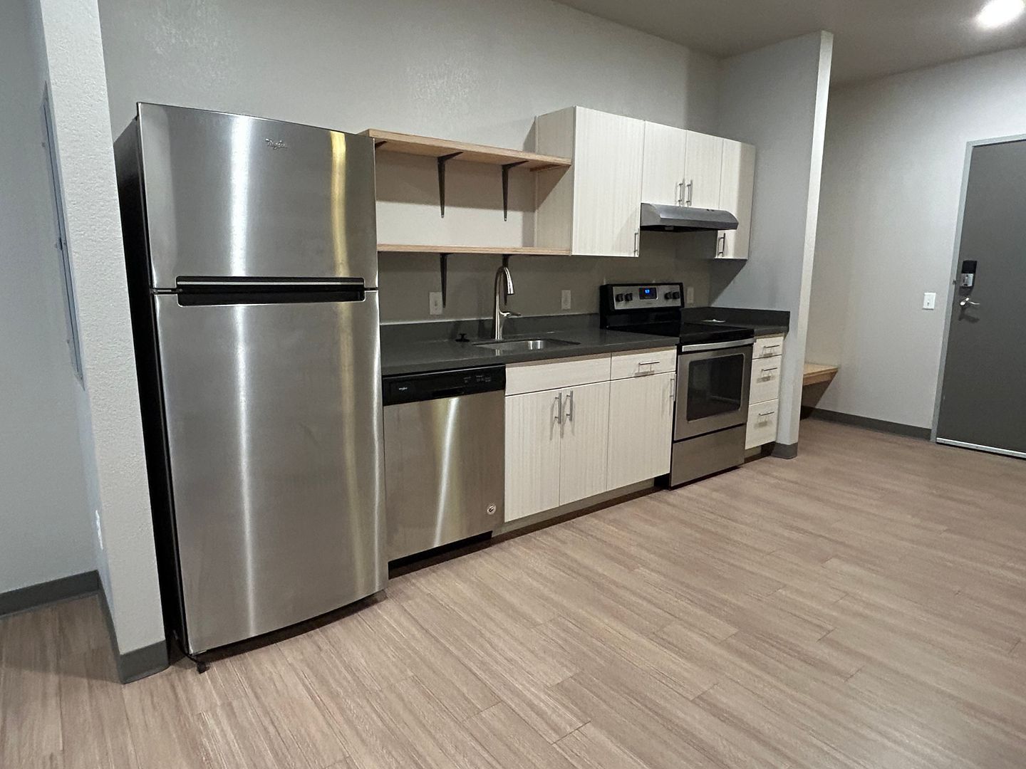This apartment home has plenty of natural light, an open floor plan, hardwood laminate floors (2nd and 3rd floors) or industrial concrete floor (basement and 1st floors) and modern finishes throughout All apartments come with a stacked washer and dryer, dishwasher, garbage disposal and wifi is free.
