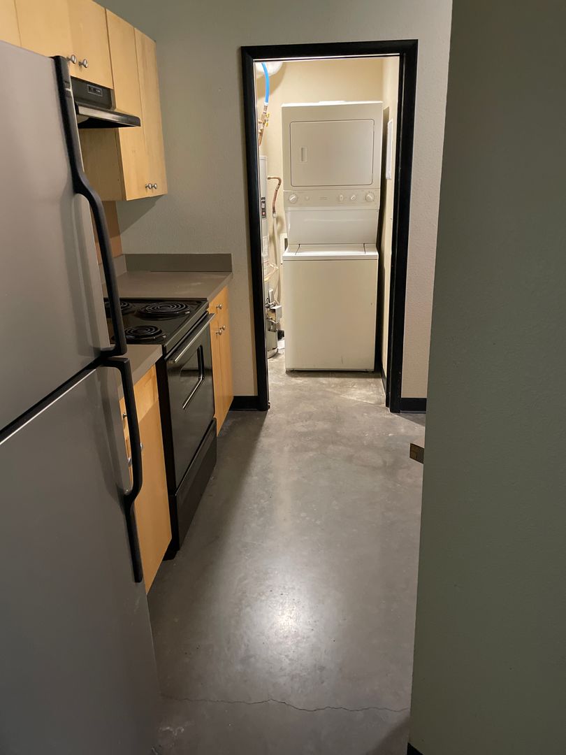 Featuring a large balcony and vaulted ceiling with large windows, this a sunny and spacious place to call home! Every apartment has a washer and dryer in unit and robust, professionally managed wifi. Polished concrete floors means no carpet deposit.
